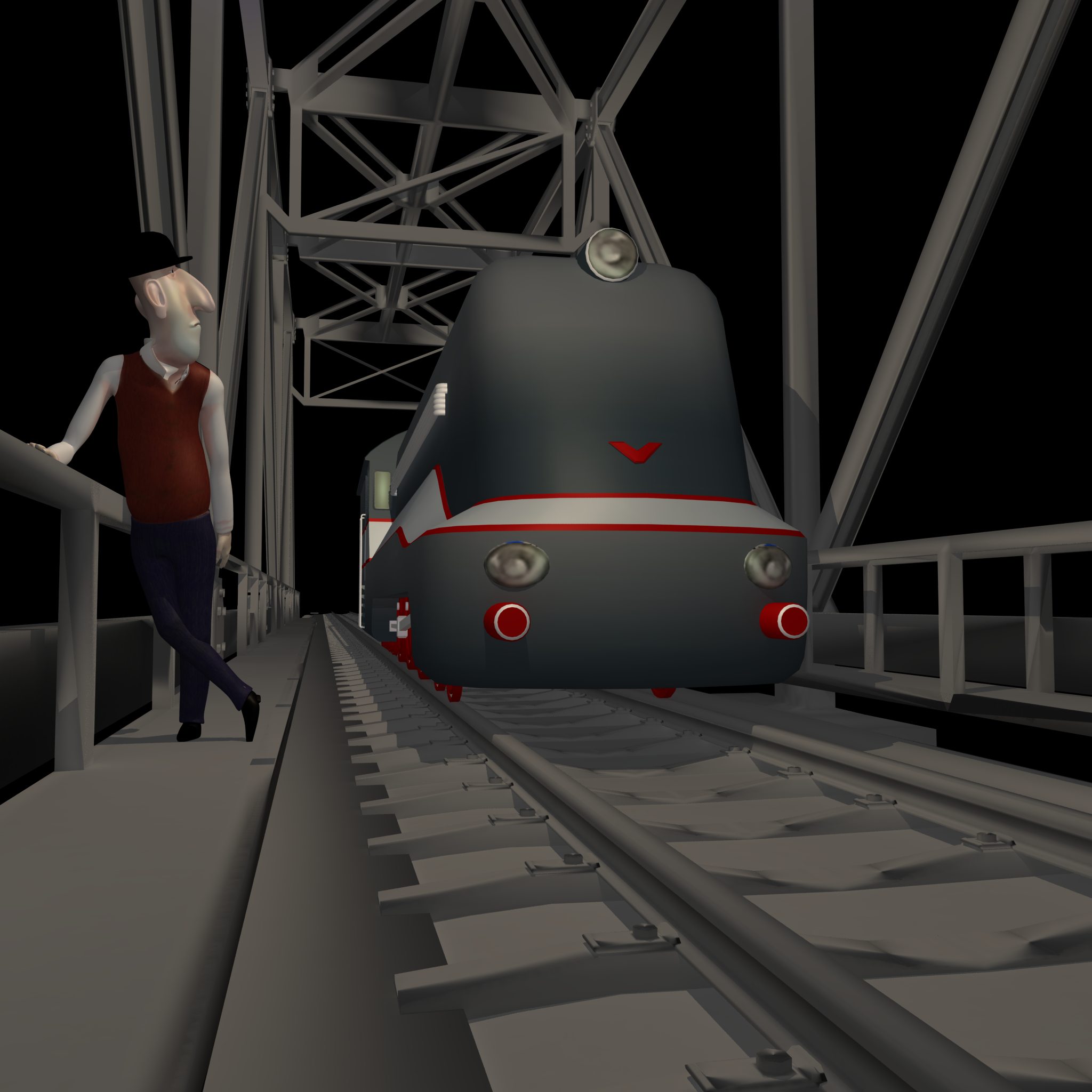 "Pinson rebuilds the equipment and finds new ways to enter the ocean by train using long ramps on the shore.Pinson, an anthropologist, is the unique heir of the family of railraoad owners who organized a network of underground railroads that could support time travel." + More illustrations.