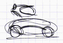 Sketches of the body of the Robo Car. The "head" of the Robo Car with the computer vision system and camera is sculpted like a helmet.