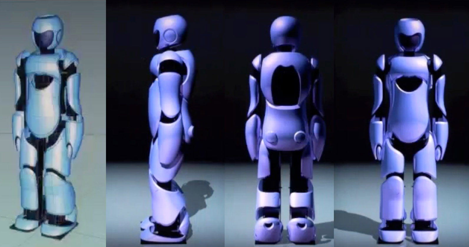 The following prototype of the "e-nuvo HUMANOID" by znug design shows a new stage of evolution of the visual language of the robot's exoskeleton. The black joints inserted between the blue segments have specific shapes that can signal the direction, scale and orientation of the robot in space.